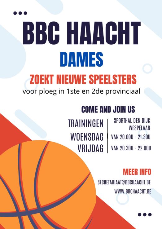 BBC Haacht is voor haar Dames (1ste en 2de Provenciale) op zoek naar nieuwe speelsters. Interesse? Hieronder meer info. Kom zeker eens langs.